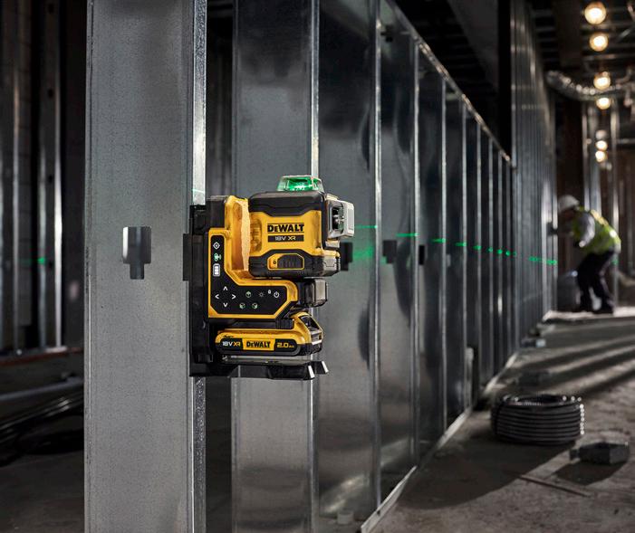 Laser 18V XR 3x360° 18V Laser frá Dewalt Með 3x360° grænum laser. Nákvæmni +/–3mm/10 m. Sjálfstillisvið: +/– 3°
