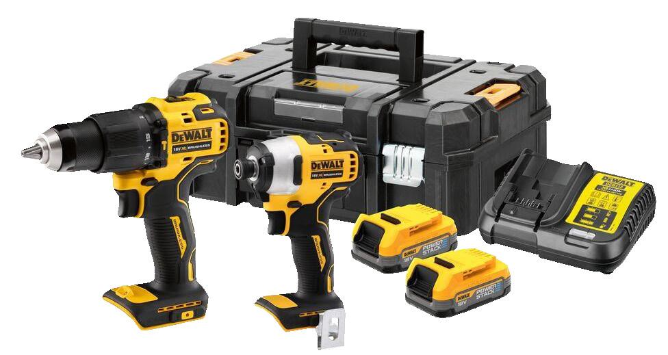 2 stk., Powerstack rafhlöður (1.7Ah), kolalaus mótor. Borvél: Höggvél, 65Nm, hraði 0-450/1650 sn./mín., mesta borun tré 30 mm, málm 13 mm, múr 13 mm. Led ljós, Skrúfvél: 190 Nm, hraði 0-2800 sn./mín. Höggtíðni 0-3200, Led ljós, hleðslutæki. 5159134