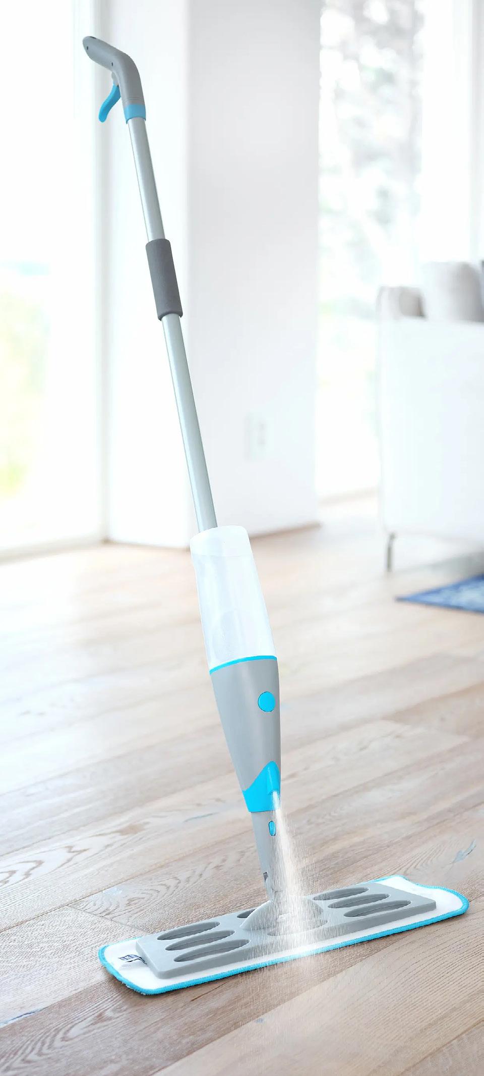Moppa með 500 ml. vatnstanki á skaftinu. Stærð 400 x 1200 mm. Það hefur aldrei verið auðveldara að skúra. Vatn og sápa sett í vatnstankinn, spreyjað og moppað og gólfið verður skínandi hreint. Það þarf enga fötu og ekkert að vinda tuskuna fyrr en verki er lokið. 2007328