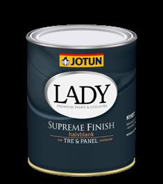 • Lady Supreme Finish veitir einstaklega sterka og slitþolna áferð, sem hentar bæði fyrir innanhúss- og útihurðir, lista, húsgögn og glugga.
