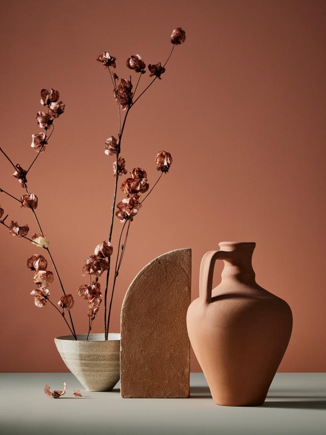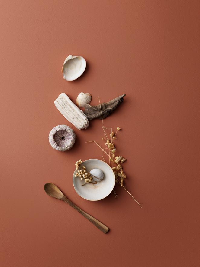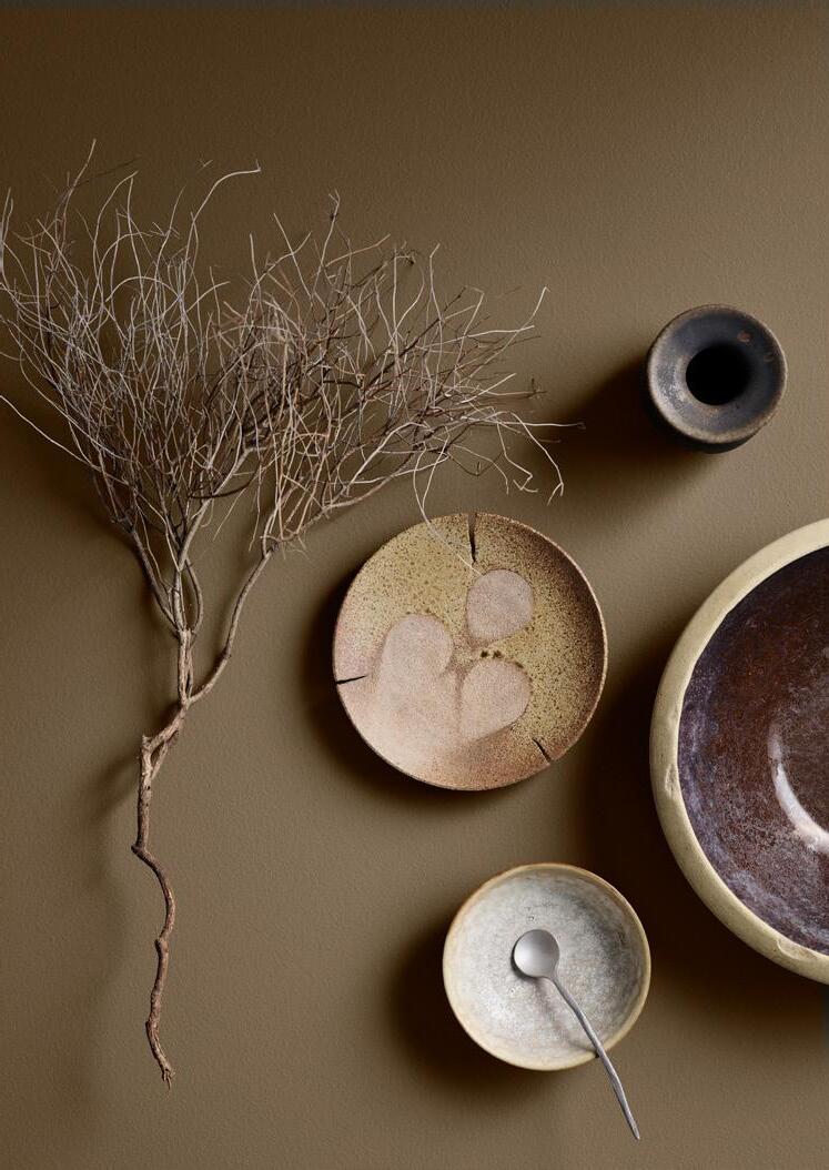 Varm og jordnær. Jord og sand, skjell og stener … Naturen byr på langt flere farger enn grønt. Solide jordfarger, avdempede gultoner og varme rødfarger kan gi assosiasjoner til storslåtte landskap av fjell og ørken. Vakre, uendelige naturriker som gløder i soloppgang.