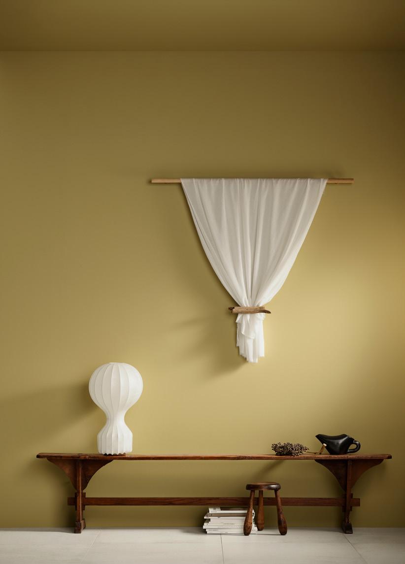 Gå for gull. Nabofargene Mexico og Earthy Yellow fremhever dempede, beige toner som den nye Antwerp Beige. Mexico opptrer som en modig aksentfarge og skaper et distinkt interiør, mens den dempede gultonen Earthy Yellow introduserer en varm og subtil eleganse.