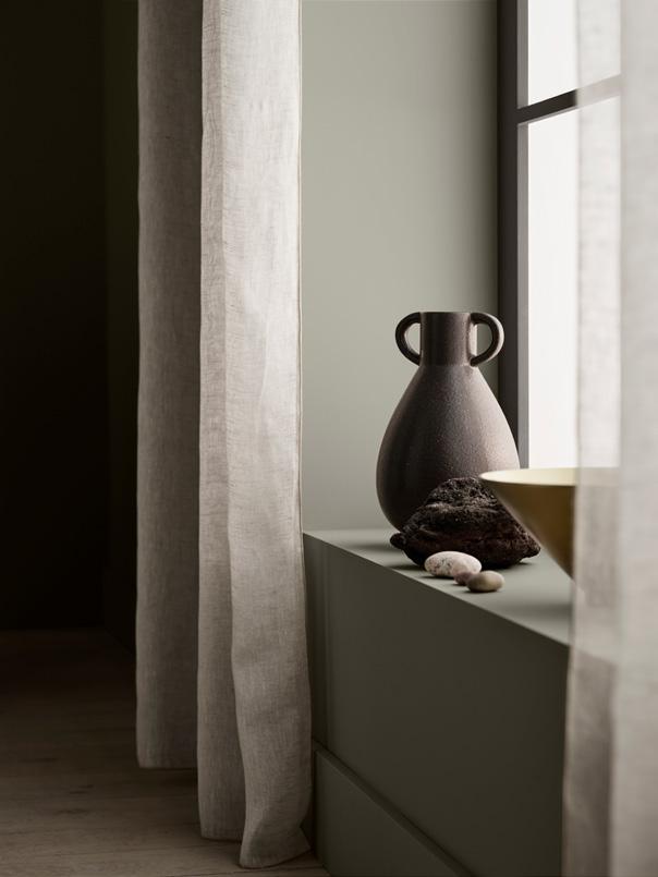 Beroligende grønt. Grønne farger gir umiddelbare assosiasjoner til naturens ro og skaper rom med avslappende atmosfære. Paletten av ton-i-ton farger med røtter i naturen gjenskaper freden du kan finne i en lysning i skogen, og stemningen i hjemmet blir både lett og frisk – og beroligende.