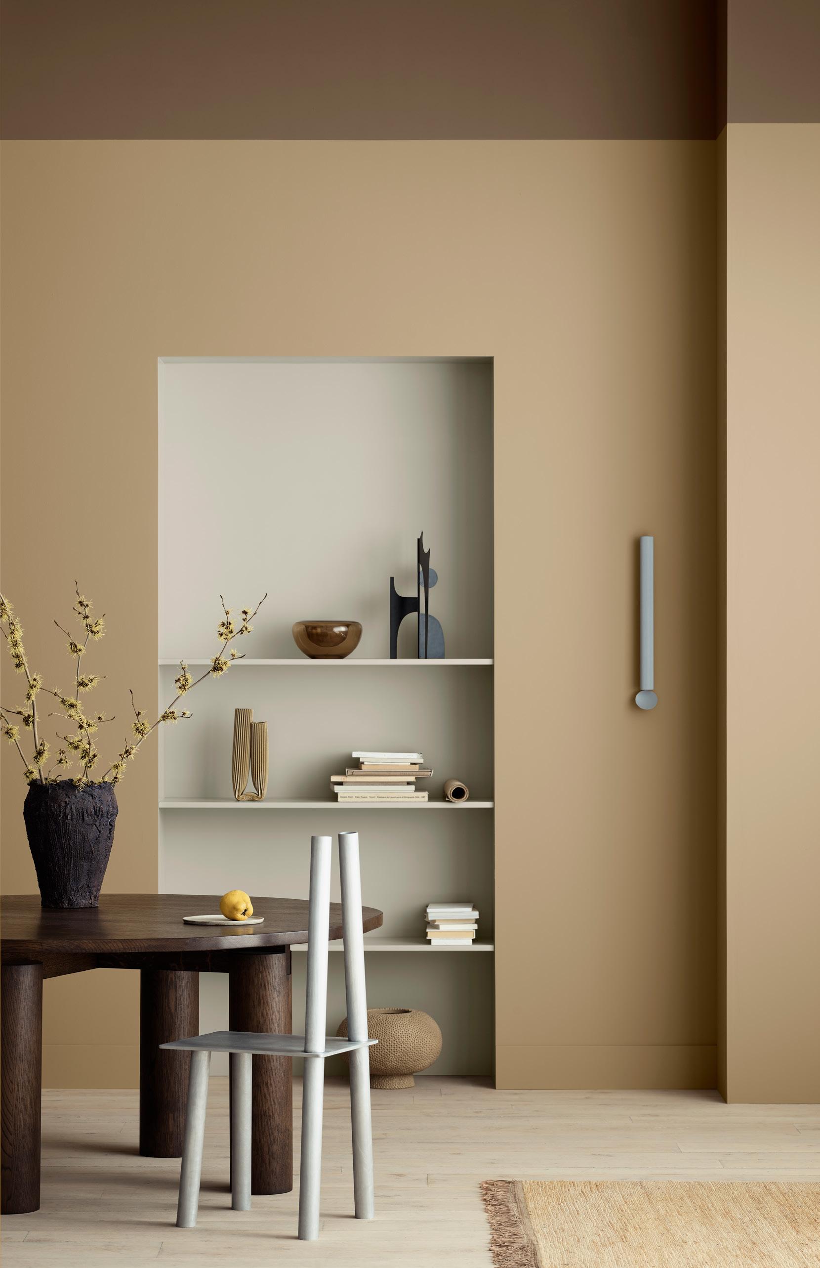Brun eleganse. Fra den dype bruntonen Soft Brown, til den lette gyllenbrune tonen Rock Sugar og den taktile Soothing Beige – brune og beige toner kan mikses og matches for å skape et nyanserikt interiør som utstråler varme og komfort.