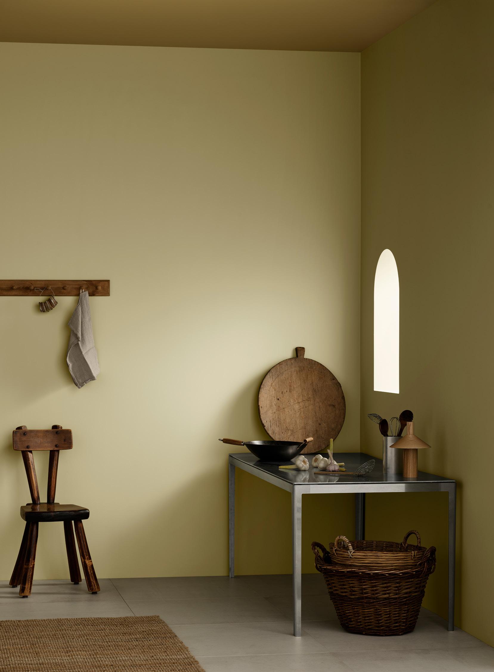 Slipp lyset inn. Gult er synonymt med glede. Selv de mest subtile gule nyansene bringer med seg en oppløftende energi. Ved å kombinere den glade pastellfargen Fresh Pasta med nøytrale nyanser som Comfort Grey, får interiøret en distinkt karakter. Sammen med nabofargen Green Tea skapes gyllen magi med assosiasjoner til mykt solskinn filtrert gjennom løvverk.