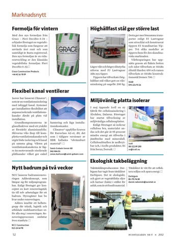 Flexibel kanal ventilerar Isover har lanserat Climaver®, som är en ventilations isolering med inbyggd kanal. Systemet ger installatörer flexibilitet att anpassa isolerade ventilations kanaler direkt på plats vid installation. Grundkomponenterna är glasullsskivor med ett ytskikt av förstärkt aluminiumfolie. Skivorna viks ihop till kom pletta ventilationskanaler och utgör både isolering och kanal på samma gång. Vikten på ventilationskanalerna är läg re än motsvarande oisolerade plåtkanaler vilket ger enkel