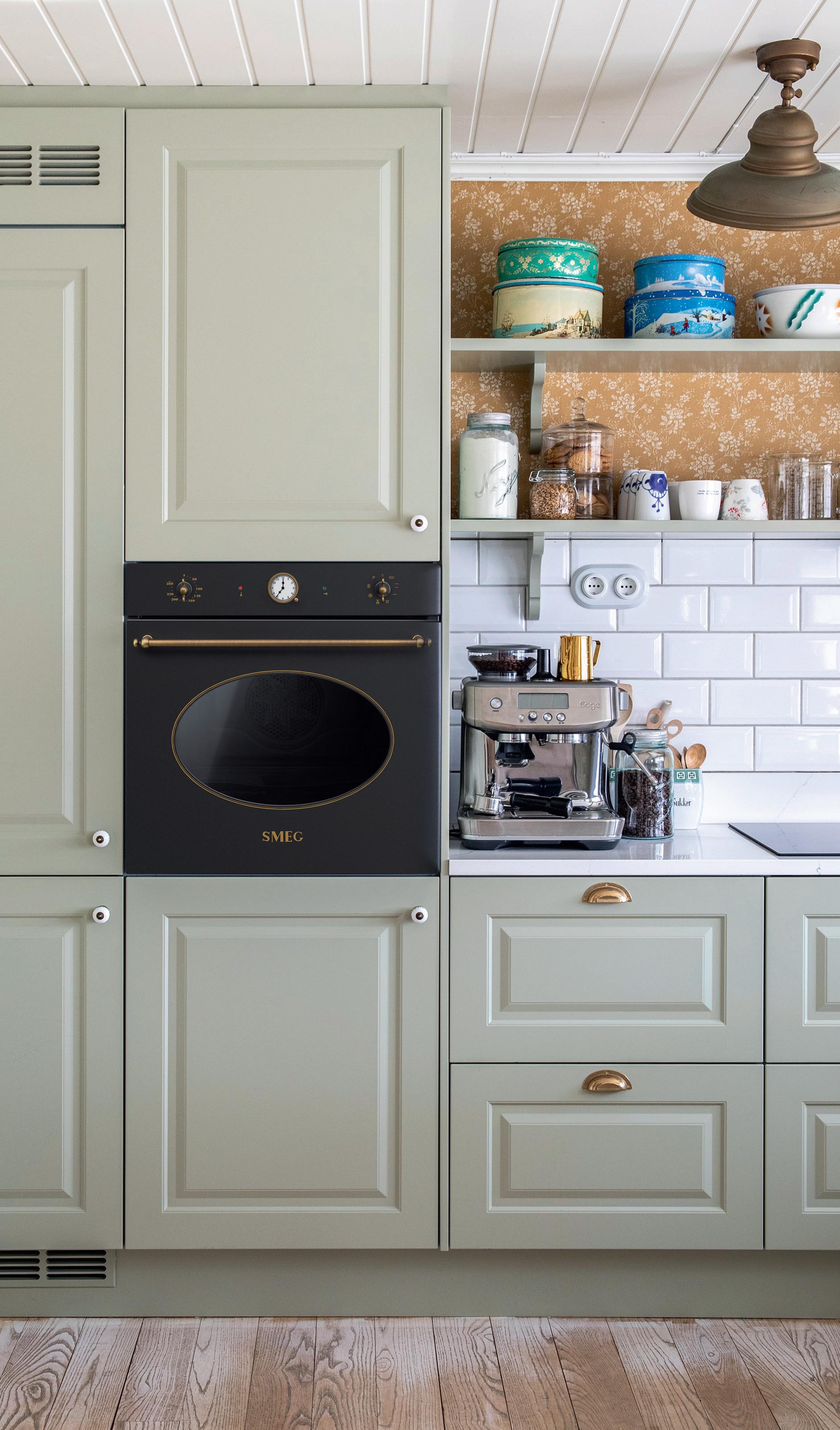 Selv har hun valgt to vegglamper over kokesonen der ventilatoren tradisjonelt ville hengt. Nok et grep som gjør kjøkkenet til noe mer enn bare en arbeidsplass.