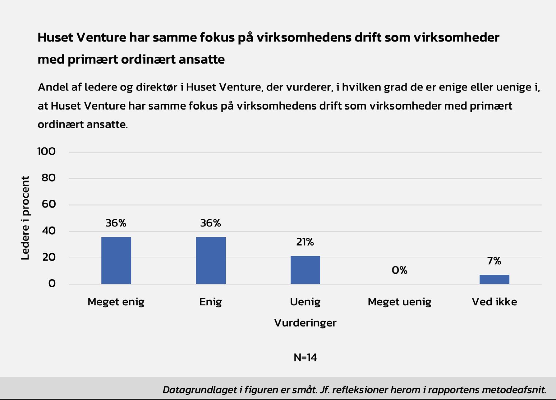 I Huset Venture har vi en klar opfattelse af, at mennesker ansat i fleksjob er lige så dygtige og kompetente som ordinært ansatte – blot med et reduceret timeantal. Samtidig ved vi af erfaring, at ansatte i fleksjob kan anvendes på flere niveauer i en virksomhed. Således er der i Huset Venture chefer ansat i fleksjob såvel i den daglige ledelse som i den strategiske ledelse. Med undersøgelsen her ønsker vi at dokumentere og efterprøve denne opfattelse samt at undersøge, hvordan det rent faktisk fungerer med chefer ansat i fleksjob. Vi ønsker med andre ord at undersøge, om der er hold i vores virkelighedsbillede.