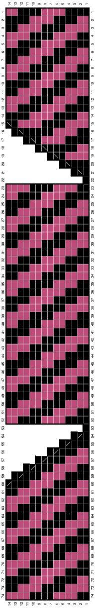 Aukið út um 21 lykkju í fyrstu umferð munsturmyndar A, samkvæmt merkingum. Nú ættu að vera 57 lykkjur á prjónunum.