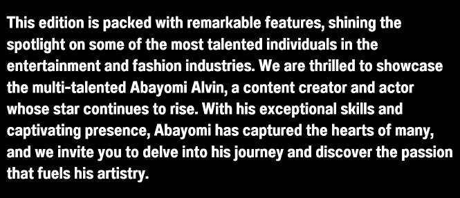 Hush Magazine: Abayomi, congratulations on being selected as the next cover for Hush magazine! We're thrilled to have you. Tell us about your journey and the milestones that have shaped your success.