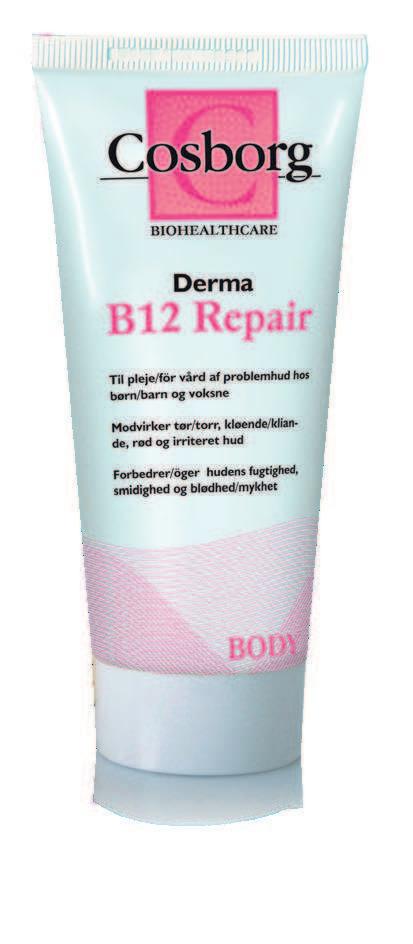Kliniske undersøgelser dokumenterer, at Vitamin B12 i cremeform er en effektiv, sikker og hurtig måde at behandle tør, kløende, rød og irriteret hud – både hos børn og voksne. Med Cosborg Derma B12 Repair bliver huden blød og smidig. Samtidig forstærkes hudbarrieren, så huden igen bliver intakt og kan yde optimal beskyttelse. Uden parfume og farvestoffer.