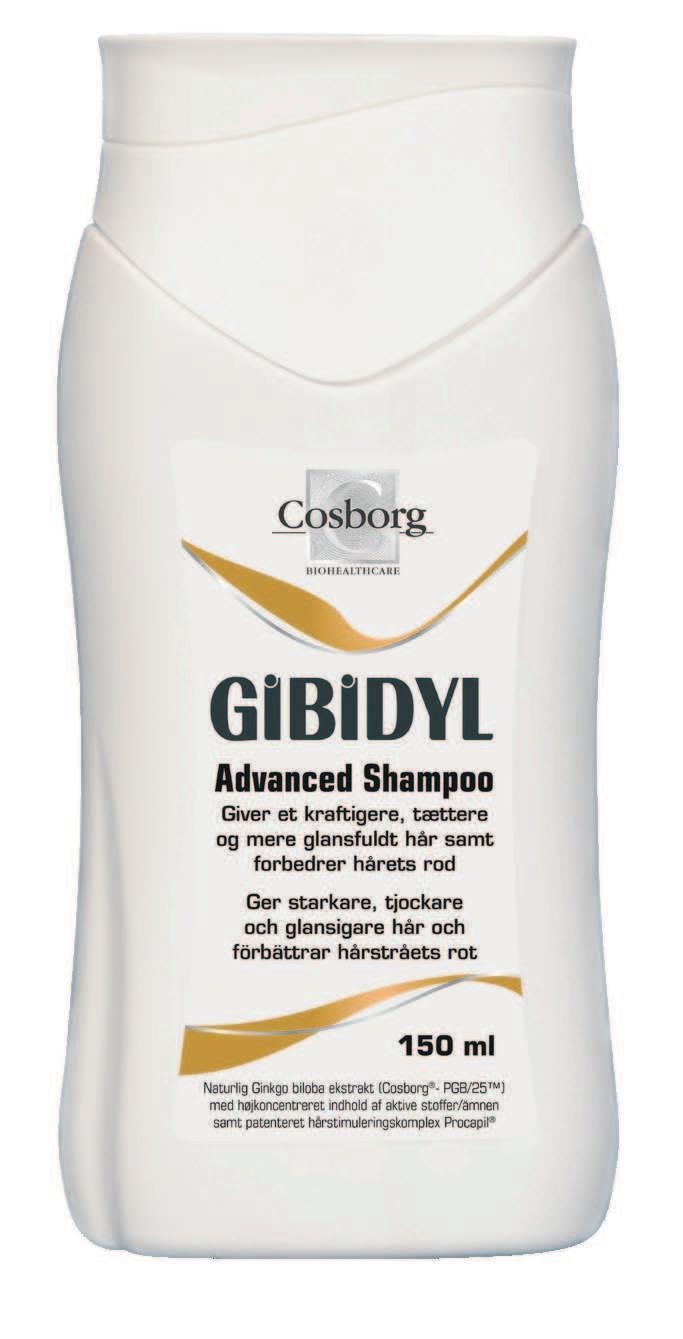 Gibidyl Advanced shampoo anvendes mod kosmetisk hårtab samt tyndt og glansløst hår. Shampooen øger blodforsyningen og forbedrer tilførslen af ilt og næringsstoffer i hårsækkene og hovedbunden. Danske forskere har testet Gibidyl Advanced Shampoo og undersøgelsen bekræftede, at shampooen giver et kraftigere, tætte og mere glansfuldt hår, som allerede indtræder efter 6 ugers brug og løbende forstærkes.