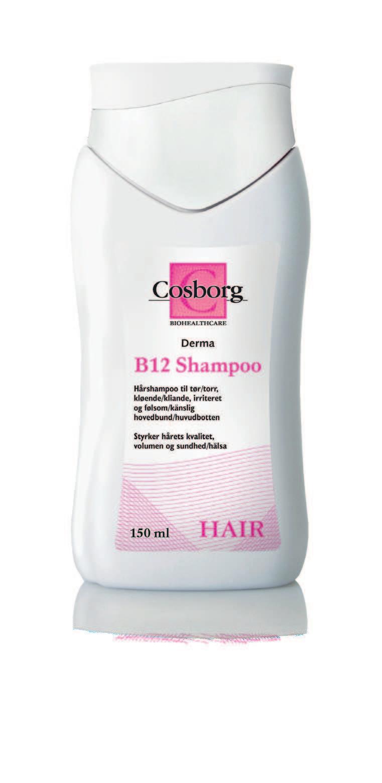 Mange kender til tør, kløende og irriteret hovedbund som ofte kommer af lav fugtighed kombineret med store temperatursvingninger ude og inde. Huden strammer og begynder at skælle og klø. Cosborg Derma B12 shampoo med vitamin B12 har i undersøgelser vist, at være en effektiv, sikker og hurtig måde at behandle problemhud. Indeholder tillige planteekstrakt fra ginkgo biloba samt vitaminerne B3 og B5. Uden parfume og farvestoffer.