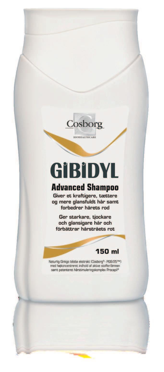 Gibidyl Advanced shampoo anvendes mod kosmetisk hårtab samt tyndt og glansløst hår. Shampooen øger blodforsyningen og forbedrer tilførslen af ilt og næringsstoffer i hårsækkene og hovedbunden. Danske forskere har testet Gibidyl Advanced Shampoo og undersøgelsen bekræftede, at shampooen giver et kraftigere, tætte og mere glansfuldt hår, som allerede indtræder efter 6 ugers brug og løbende forstærkes.