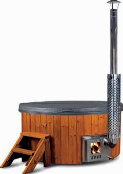 Lækkert vildmarksbad med glasfiberkar med plads til 4-6 personer. Vildmarksbadet har intern ovn og er beklædt med bejdset fyrretræ. Trappe og skorsten (inkl.). Indvendig/udvendig: