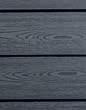 Sorte pulverlakerede aluminiumsstolper. Plankerne er børstede og antracitgrå.