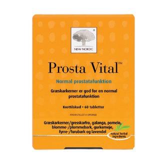 Derfor er Prosta Vital så god Indholdet og kombinationen i pillen er helt særlig og enestående på mar-kedet. Tabletten indeholder ekstrakt fra græskarkerner, blommebark, fransk maritim fyrrebark og galan-garod samt lycopene og vitamin K2 og vitamin D. Alt i alt en fantastisk sammensætning. Græskarkærne ekstrakt hjælper prostatafunktionen, og vitamin D er gavnlig for en sund celledeling.