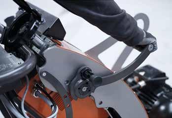 COMPACTO A sua largura estreita permite passar através de aberturas de portas normais. A altura baixa oferece uma boa visão geral da máquina durante o trabalho, sendo a sua operação mais eficiente e segura, ao mesmo tempo que baixa o centro de gravidade da máquina. As pernas de apoio têm uma largura maior para oferecer uma estabilidade superior e uma carga operacional mais alta.