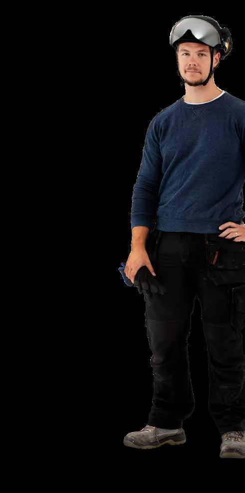 Robusto, mas leve, com uma proteção especial para o queixo, protege o pescoço e o rosto do utilizador. Inclui viseira e protetores acústicos, com espaço para máscara antipoeira e proteção ocular individual.