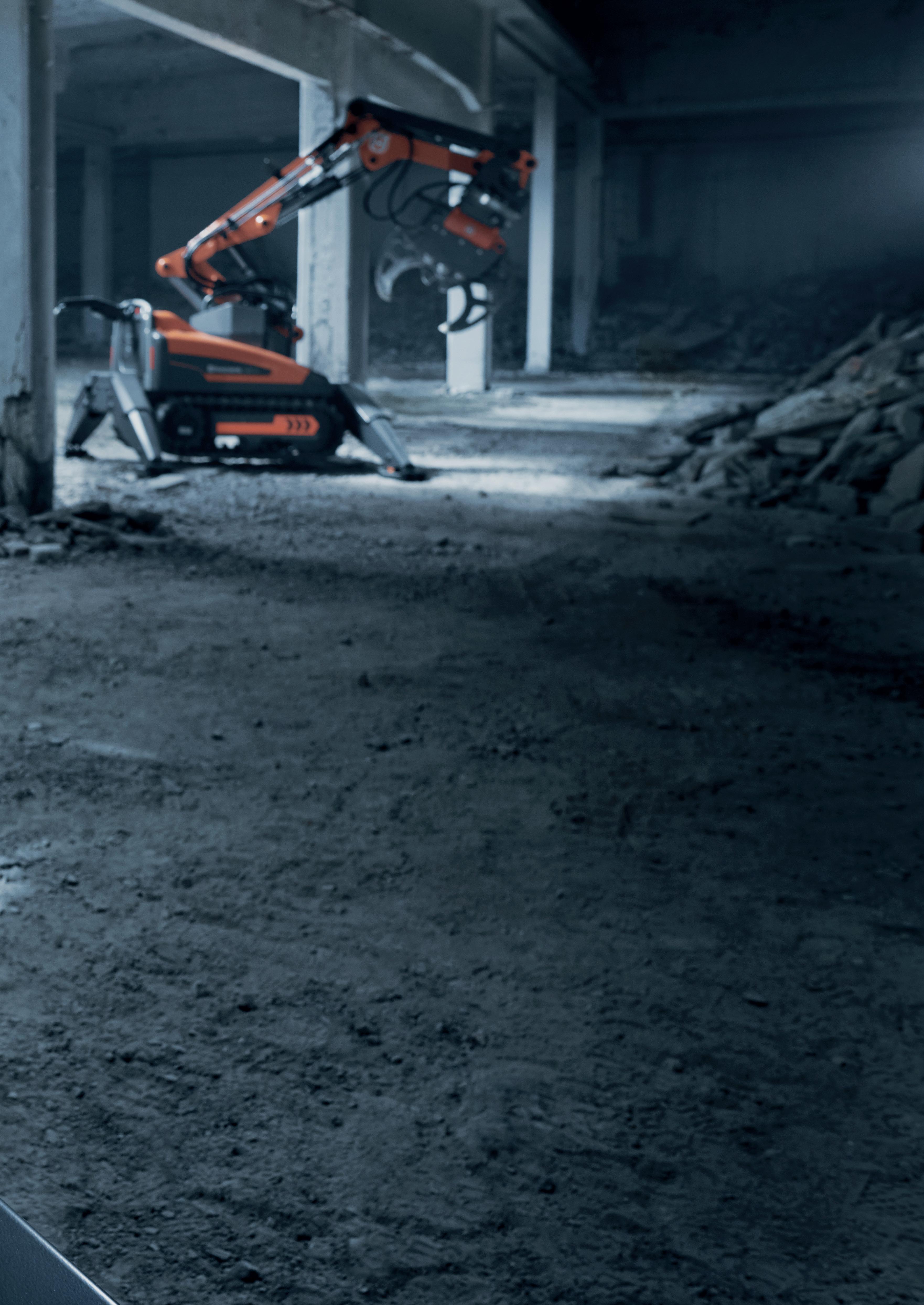 DXR – more power and control in good harmony. Our new DXR robots are the tools that enable you to work more efficiently. To help you achieve this, we’ve optimised the available power for work in hot and demanding environments and developed an all-new remote control. In combination with the skills you already have, our new machines will provide more power, more control and ultimately, high quality results. Let the new DXR range redefine the potential of the person operating them – you.
