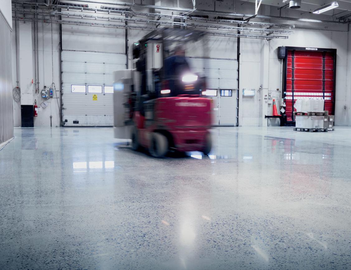 Una superficie extremadamente lisa implica vibraciones mínimas al mover mercancías con carretillas elevadoras, por ejemplo. Esto significa un entorno de trabajo mejor, ya que los operarios de carretillas elevadoras, por ejemplo, estarán menos expuestos a vibraciones.