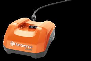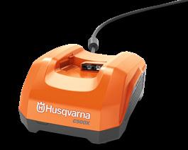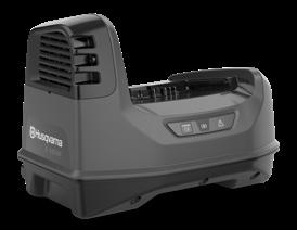 HUSQVARNA C500X/C750X Schnellladeeinheit mit 2-LED-Statusanzeige und aktiver Akkukühlung für minimale Ladezeit und längere Akkulaufzeit.