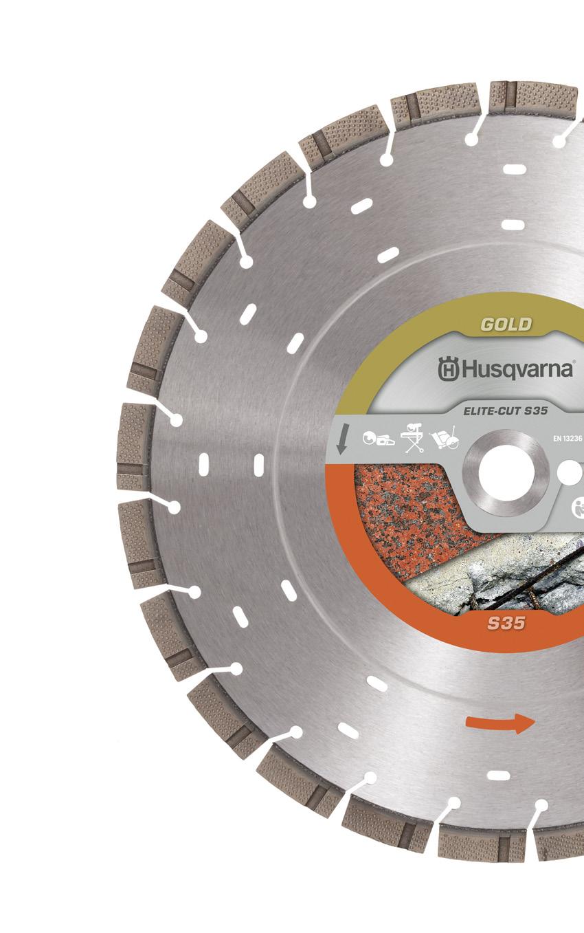 HUSQVARNA ELITE-CUT S 35 S BAT Entwickelt für gleichmäßiges und schnelles Schneiden verschiedener Materialien wie Beton, Ziegel, Mauersteine und Naturstein. Mit dieser Trennscheibe werden Sie eine geringere Seitenreibung, geringere Vibrationen und eine bessere Schlammabsaugung erleben.
