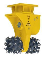 Hochproduktive Rotationsanbaufräse für Grabenaushub, Oberflächenabtrag und Profilierung in Gestein, Beton und hartem Boden.