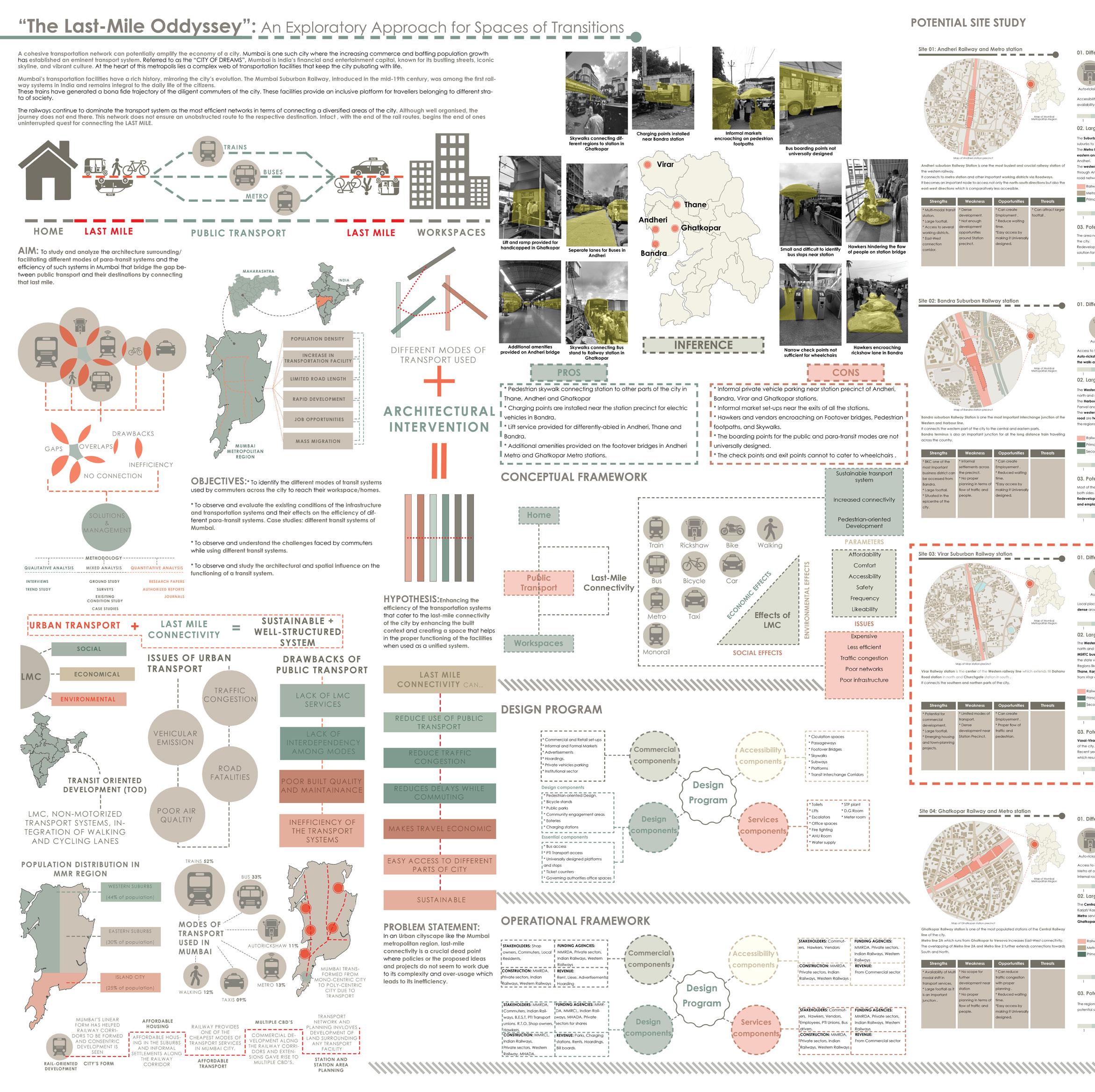 I hereby declare that the report entitled “The Last-Mile Oddyssey”: An Exploratory Approach for Spaces of Transitions submitted by me, for the fulfilment of the Bachelors in Architecture at ‘Rizvi College of Architecture’, Mumbai is a record of the Design Dissertation carried out by me under the super vision of Prof. Probuddha Mukherjee. I further declare that this written submission represents my ideas in my own words and where other’s ideas or words have been included, I have adequately cited and referenced the original sources.