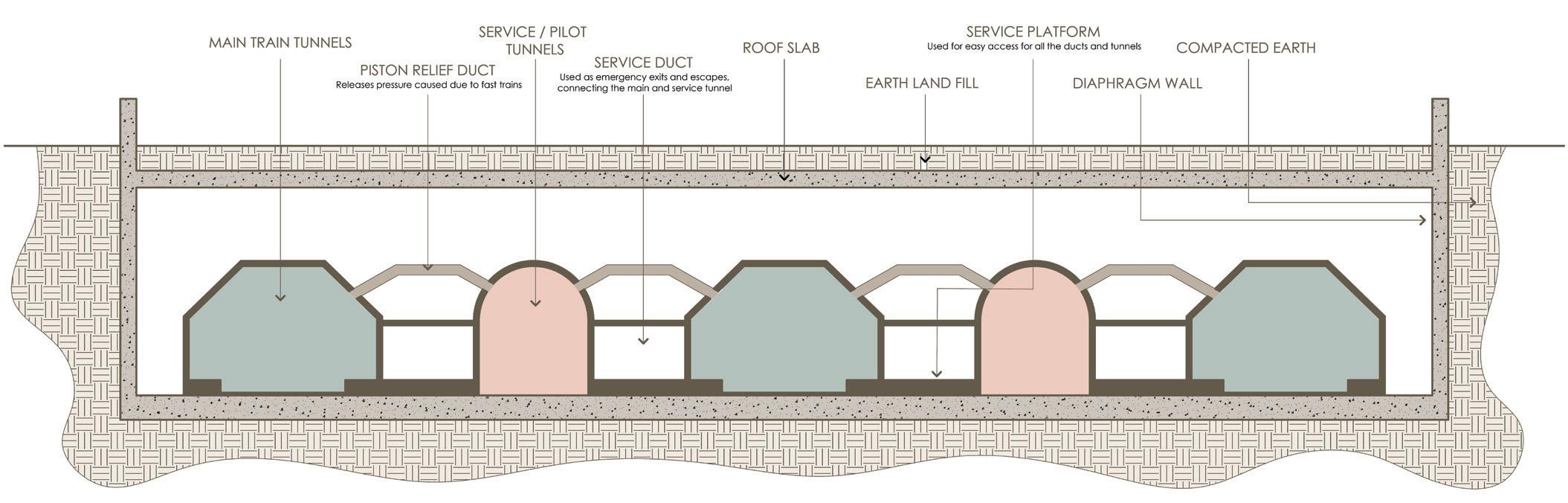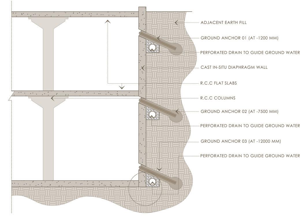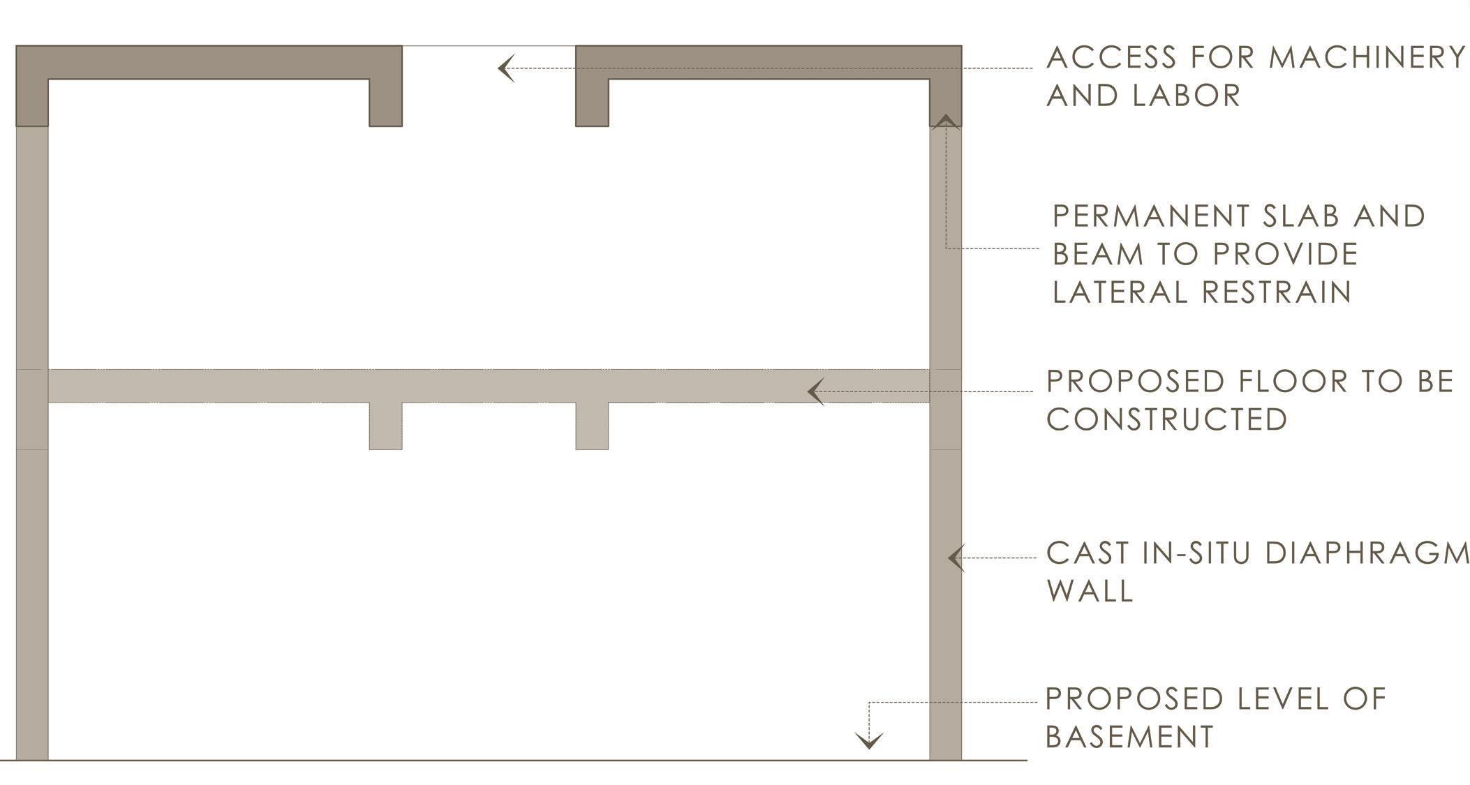 * The permanent station structure walls are built along the excavations boundary from the top to bottom construction.