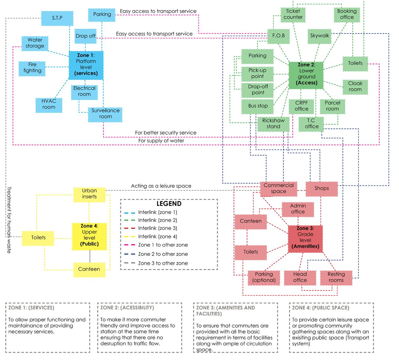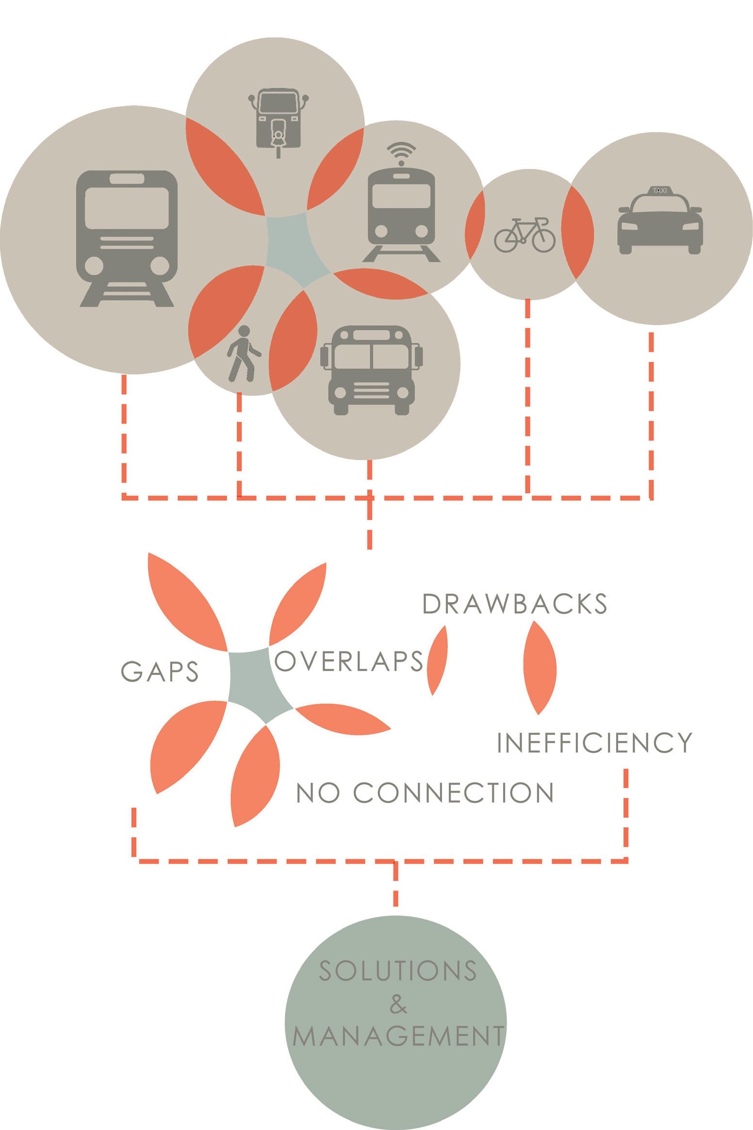 Fig 4.1.1. Gaps and overlaps in different modes of transport facilities (Author)