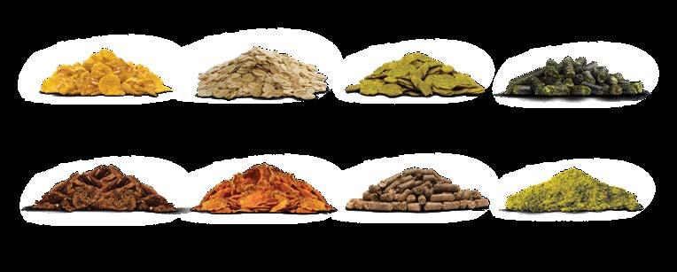 • MELASY – melasa jest produktem ubocznym pozostałym z produkcji cukru i zawiera do 50% sacharozy. Jest używana jako rodzaj “kleju” do otrzymywania twardych peletów. Brak melasy oznacza brak dodatkowego cukru w paszy.