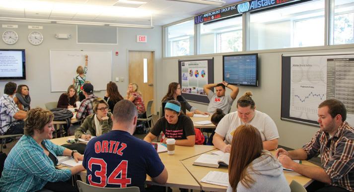 This fully equipped facility has two LED stock ticker displays that show current market activity in real time. The new center also has two large interactive touchscreens that provide students with the ability to research stock, mutual fund and bond investment performance.