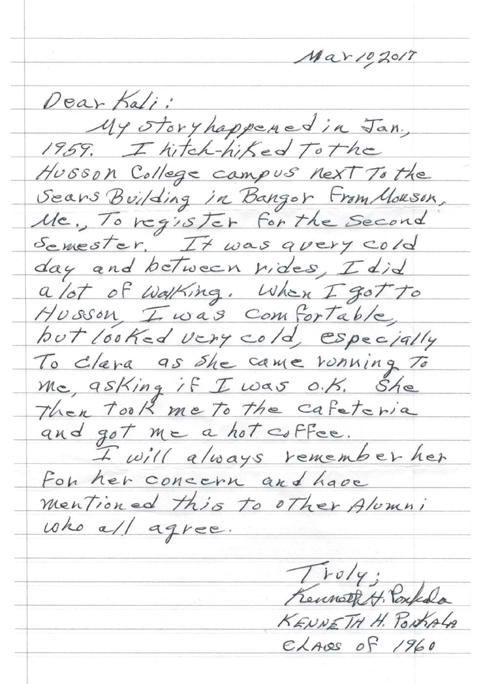 This issue of the Ledger is dedicated to events that mark the end of one era and the beginning of the next. We pay tribute to the passing of Clara Swan, a Husson icon who dedicated her life to