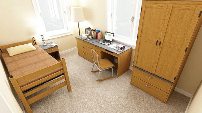 The apartments will be open to juniors, seniors and graduate students. They’ll have a complete kitchen, living/dining space, four single bedrooms and two bathrooms.