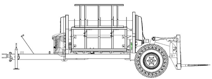 • Always ensure the rear loading forks are in ‘transport’ position when travelling without a bale. ( Approximately 45 )