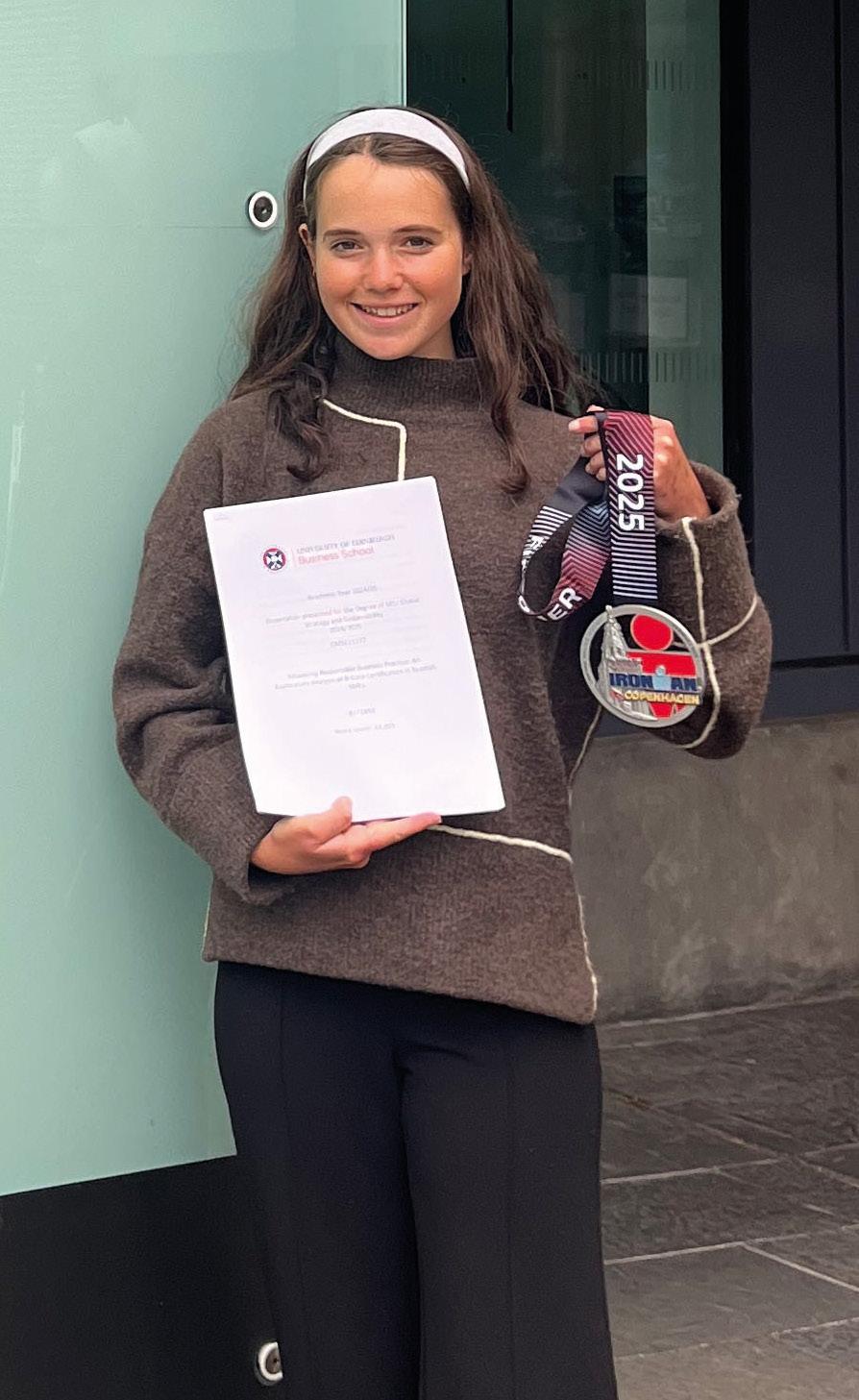 Shortly after submitting, she completed her second Ironman in Copenhagen achieving a personal best of 11 hours 11 minutes. Ella said “This result was especially meaningful given the challenge of balancing training with academic commitments throughout my master’s year - a