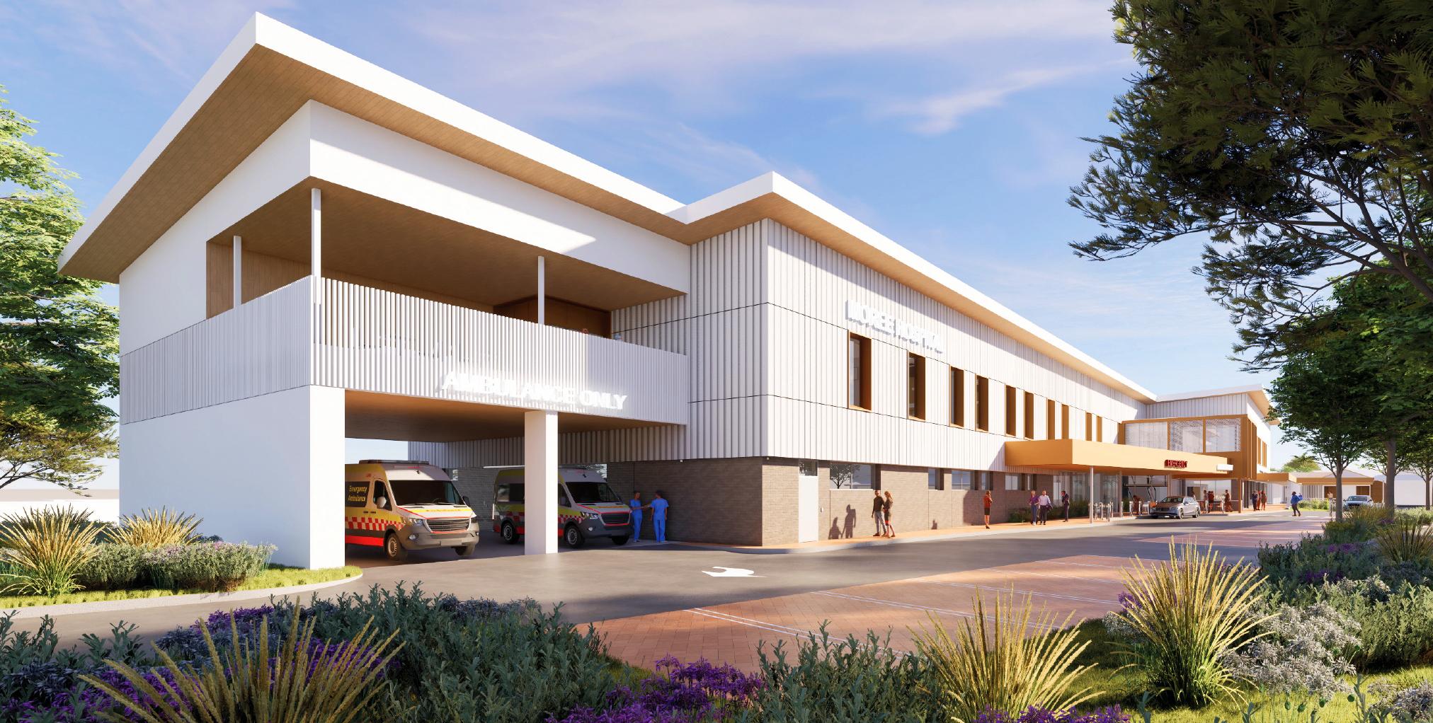 Redevelopment will include construction of a new acute services building on the existing hospital campus to house an emergency department, operating theatres, medical imaging, birthing, inpatient unit, pathology,and a new main entrance for the hospital.