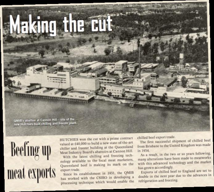 Following an enquiry, Hutchies was pleased to be able to shed light on the construction work at the meat works in Cannon Hill by the company in the mid-1930s and provided this extract from Hutchies’ history book, “More Than The Truth: Hutchies’ Hundred Years”.