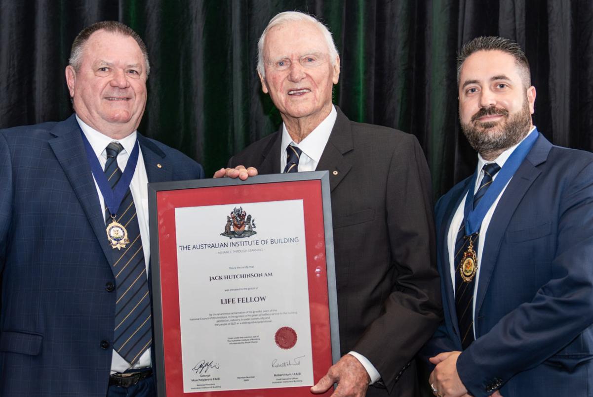 JACK Hutchinson Snr AM has been awarded a Life Fellowship of the Australian Institute of Building (LFAIB).