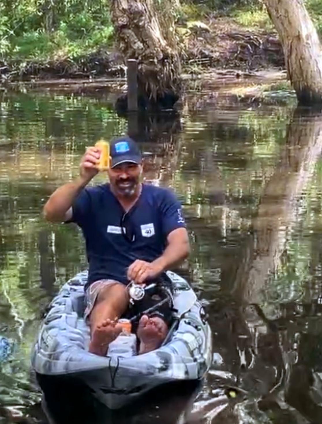 LEGENDARY Hutchies’gun,Len White(COTY1990),washolidaying in the Whitsundays when the old warhorse couldn’t resist the urge to strap on the tools. Mick De Jong is doing some