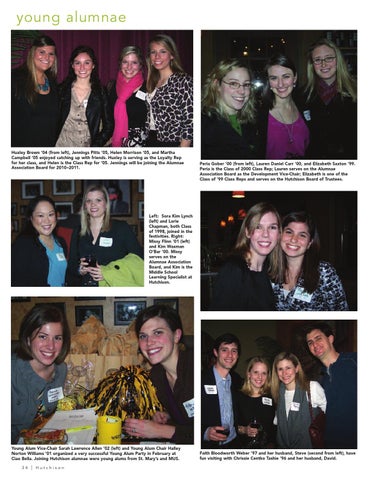 Young Alum Vice-Chair Sarah Lawrence Allen ’02 (left) and Young Alum Chair Halley Norton Williams ’01 organized a very successful Young Alum Party in February at Ciao Bella. Joining Hutchison alumnae were young alums from St. Mary’s and MUS. 34 | Hutchison