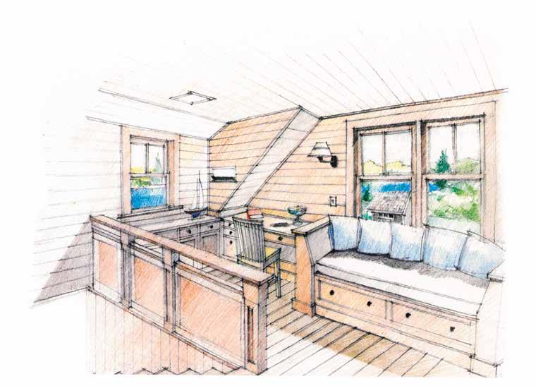 I want an alcove just for me. Kind of like a hideout separate from the commotion in the rest of the house from which to read, write, nap, or just daydream. I want to be aware of the action in the house but be able to turn my shoulder politely and be by myself. • So goes the design brief from one of our clients. She’s not alone in her desire for personal scale and place-making in home design; this is a common human need. BY MARK