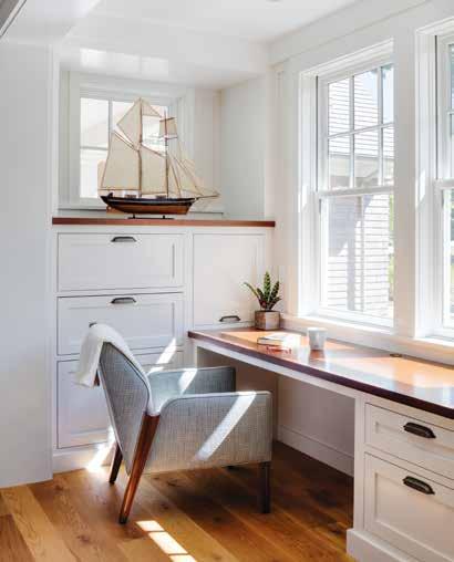 below In a Martha’s Vineyard house inspired by a European farmhouse, space under the eaves is put to good use—and becomes a cozy retreat. left A fully functional office in just a few square feet, this bright, quiet space has a welcome serenity.