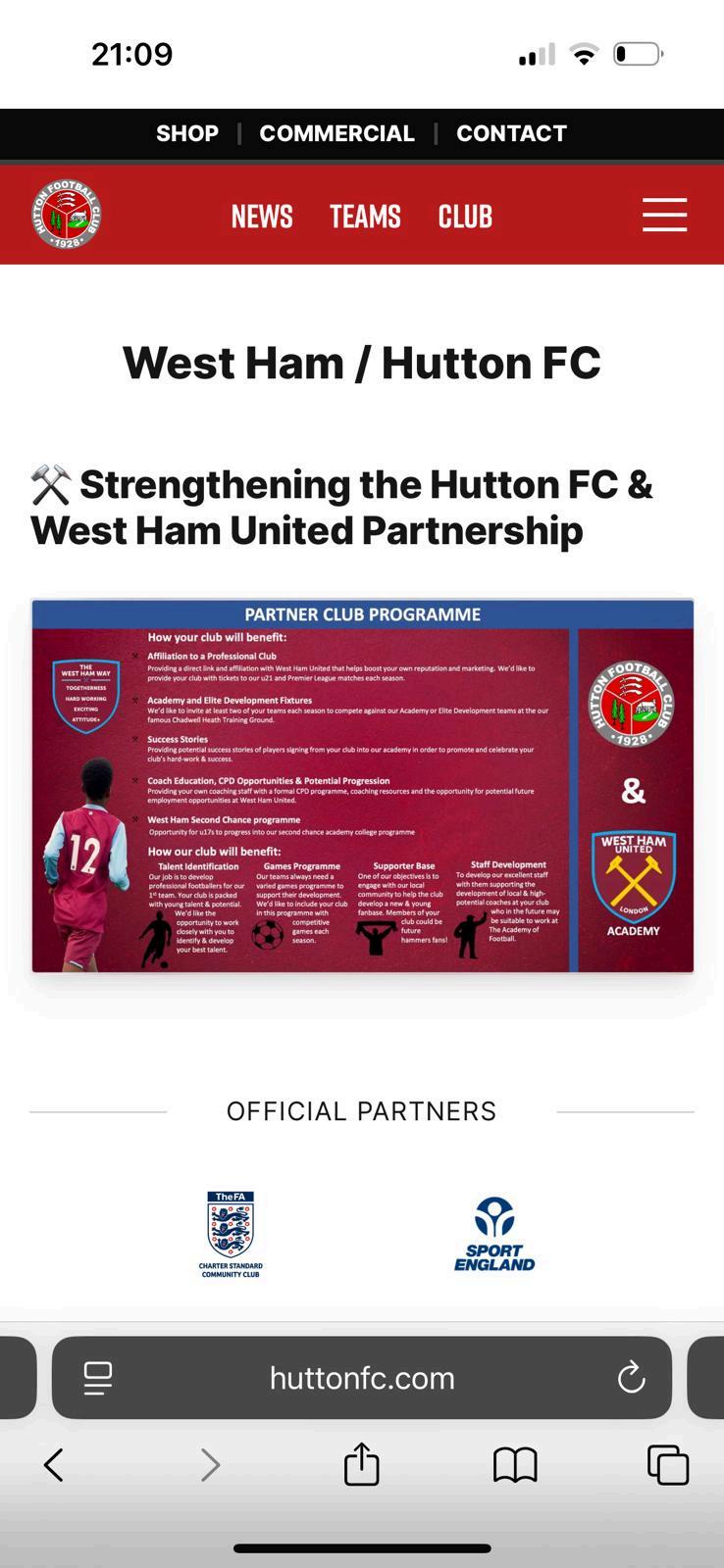Hutton Football Club is an FA Charter Standard Community Football Club. Being part of our community is important to the Club. We expect everyone connected with the Club to be respectful, disciplined and responsible Our young players will learn the game in a positive environment Hutton FC is a Club, a team, a family not individuals