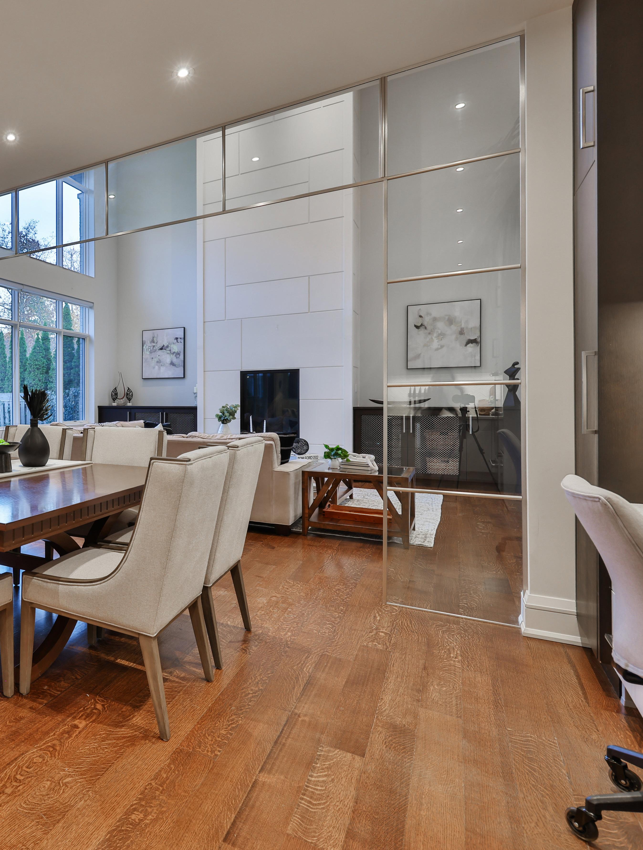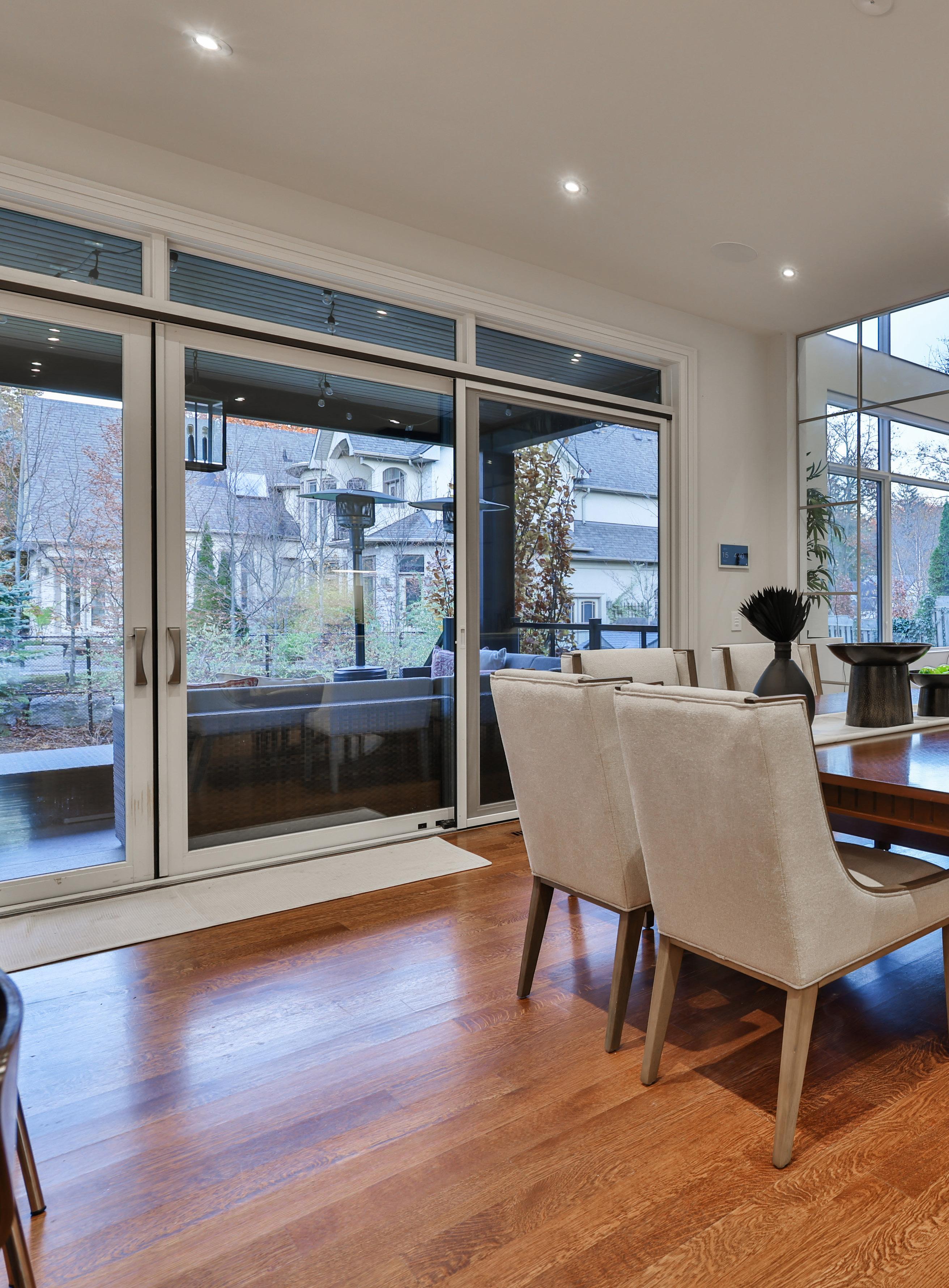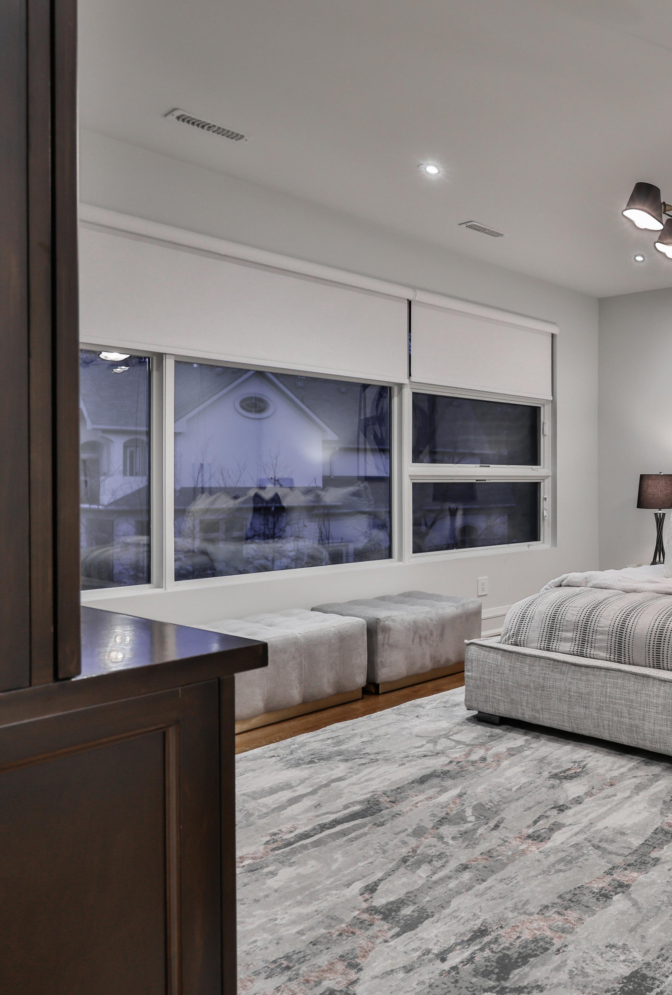 Experience true opulence in this stunning primary room located on the second storey of the home. Enter through the elegant and well-crafted doors and be greeted by an absolutely beautiful view of your outdoor oasis through the large windows.