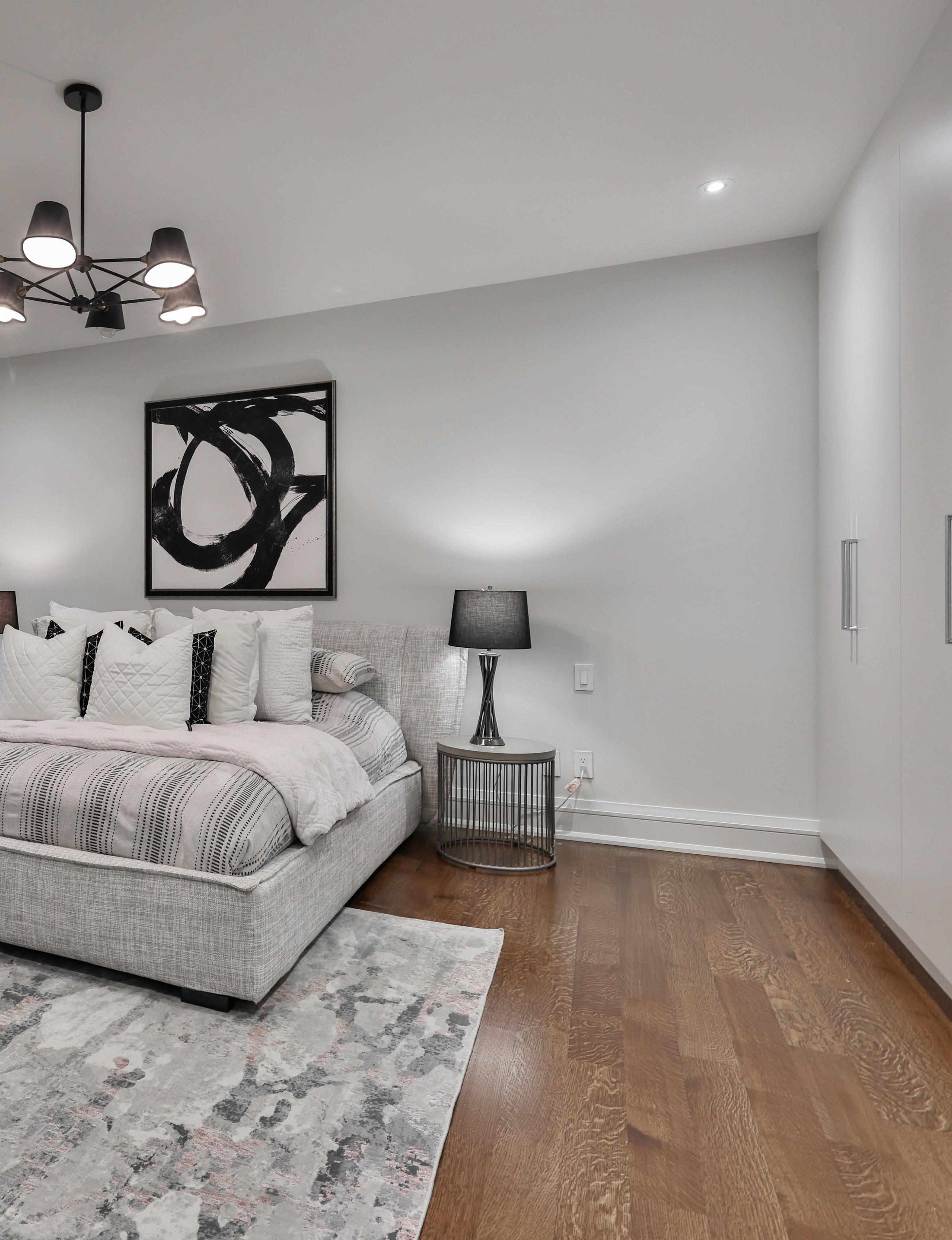 The space is perfectly designed with built-in wall to wall closet organizers, and also features a large walk-in closet. The hardwood flooring adds a touch of warmth, completing the luxurious ambiance.