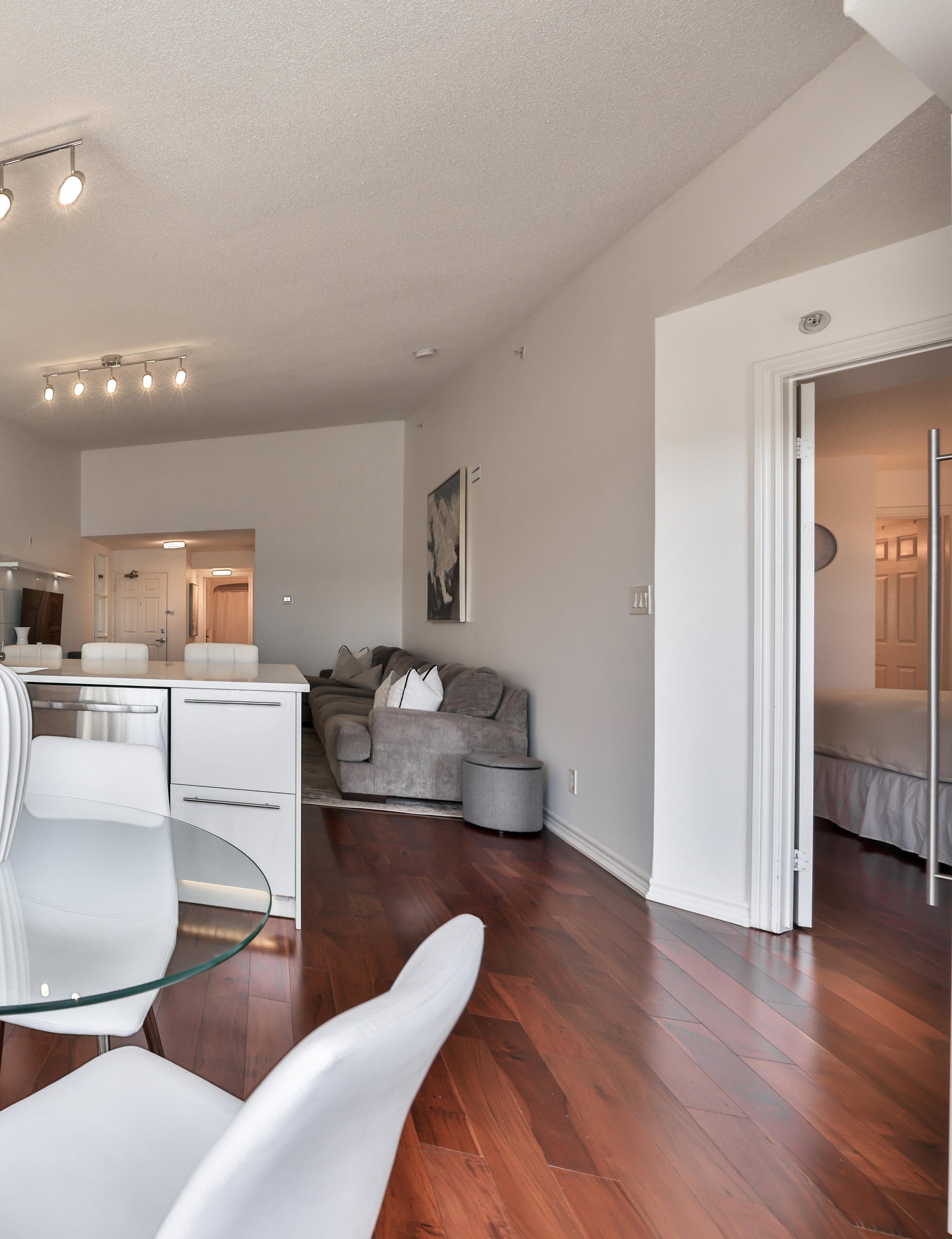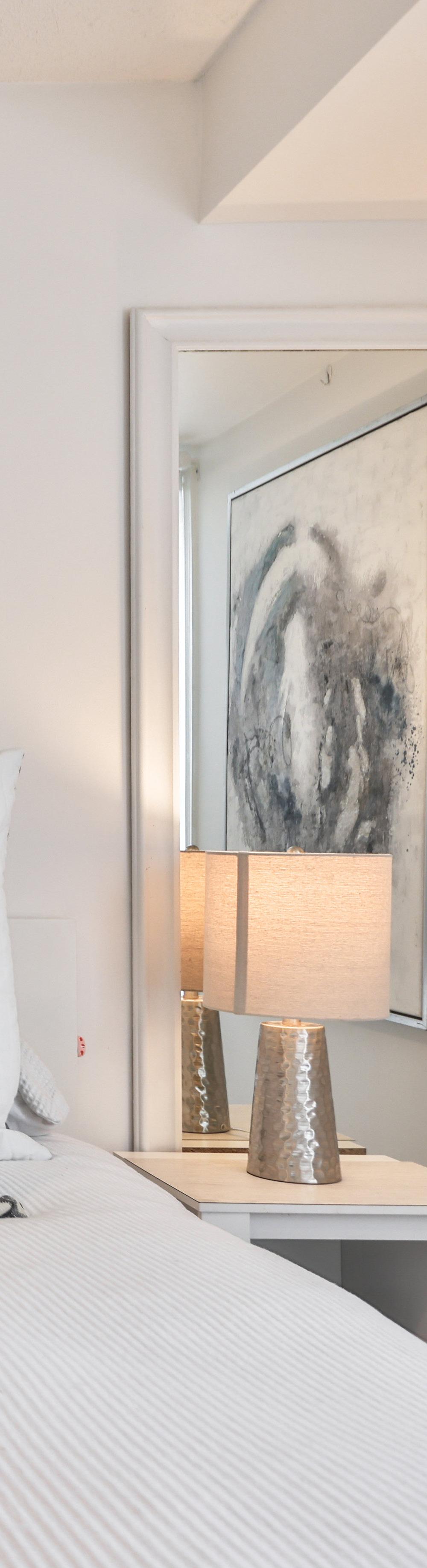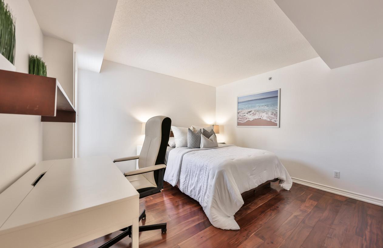 The kitchen stands as a testament to craftsmanship, featuring a custom oversized Caesarstone countertop with breakfast bar seating for 4, paired with custom soft-close cabinetry illuminated by auto lighting and under lighting, with Samsung and Whirlpool appliances that beckon to your culinary adventures. Escape to the primary bedroom, a haven of comfort and relaxation separate from the rest of your home adorned with 3-piece ensuite to pamper and rejuvenate yourself. This property isn’t merely a condo, it’s an extraordinary lifestyle awaiting your embrace.