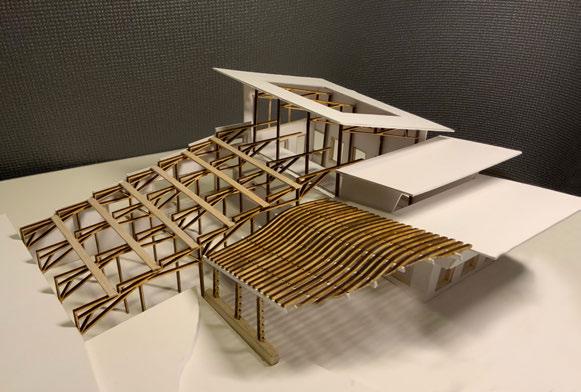 esig ed he “RCC Gym a d crea ed digi al vig e es wi h sof ware such as pho oshop, VRay a d Procrea e o immerse professors i o my visio of he projec . Successfully buil a s ruc ural buildi g model of my projec “Level-Up Lodge, wi h he assis a ce of Carle o ’s laser cu er
