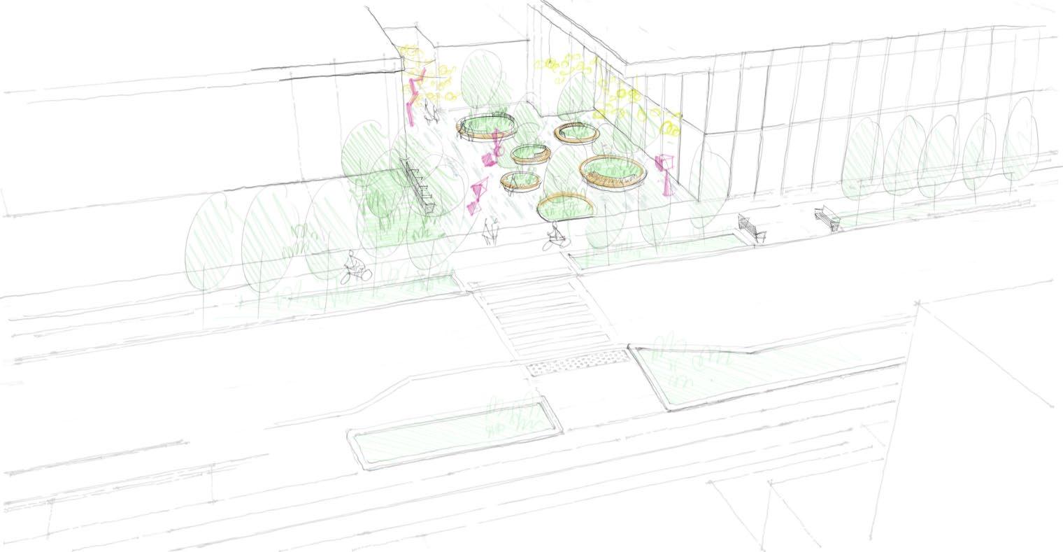 Category: Streetscape design Role (interdesiplinary work): Conceptual design, detailed design, Medium: AutoCAD, Photoshop